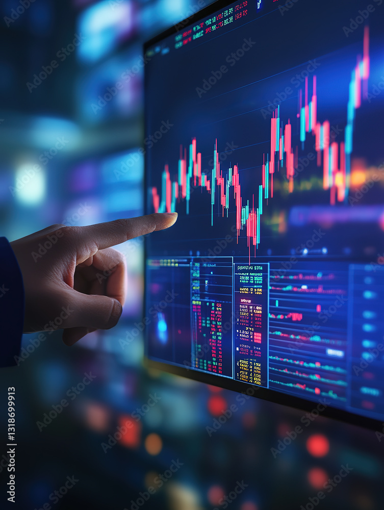 Stockbroker pointing at the K-line chart on the stock screen #1318699913