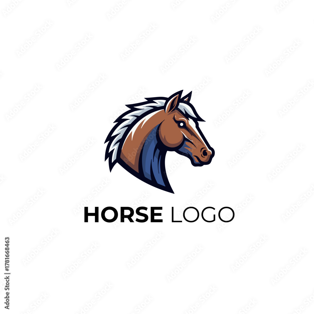 Stylized horse head logo with brown body, blue mane, and white highlights, featuring the text 'HORSE LOGO' below. #1781668463
