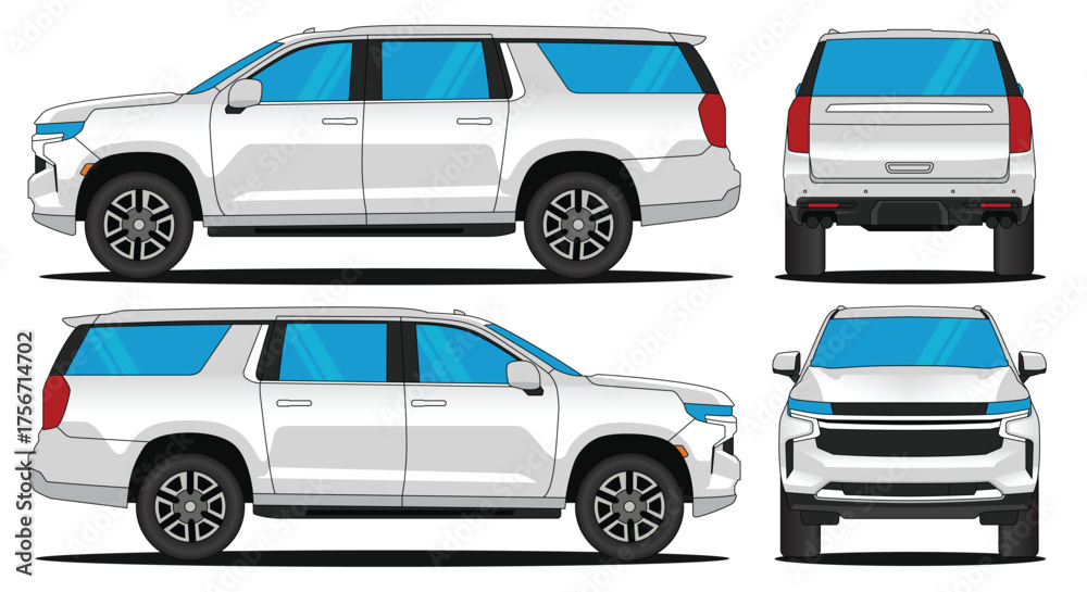 SUV car vector. Car mockup illustration of a suburban isolated on white background. With side, front, rear views #1756714702