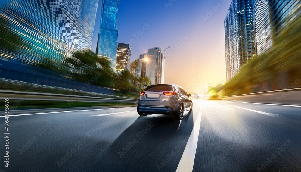 suv rush at high speed through dakr street city #1764993676