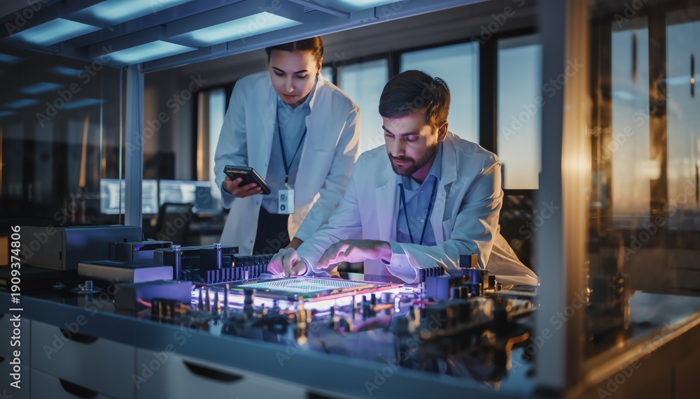 team of scientists working on quantum computer in high-tech laboratory #1909374806