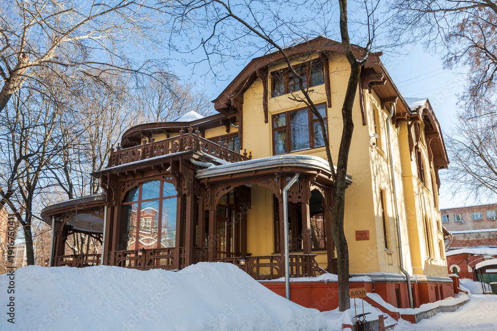 The mansion of merchant V. D. Nosov in winter in Moscow, built in 1903 in the Art Nouveau style according to the design of architect L. N. Kekushev. Moscow, Russia #1916750411