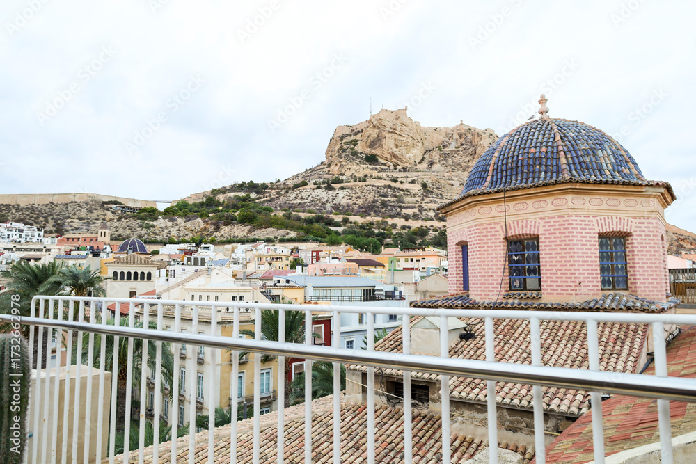 The Santa Barbara castle and cupola of the Town hall of Alicante city #1732662978