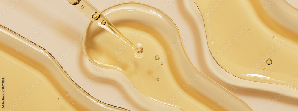 Transparent cosmetic liquid gel drop from dropper on beige background 3d rendering suitable for skin care serum moisturizer anti aging essence #1970011104