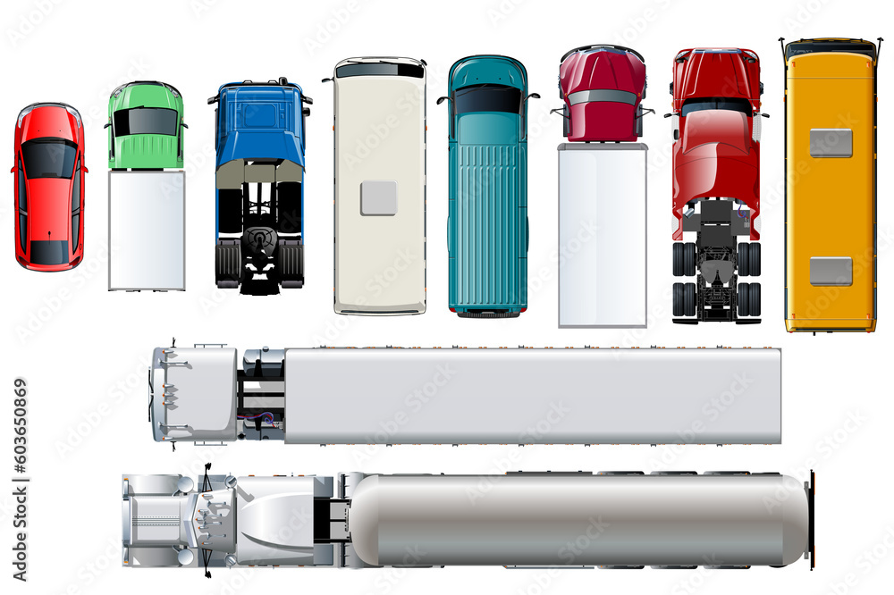 Transport top view set isolated on white. PNG format with transparency #603650869
