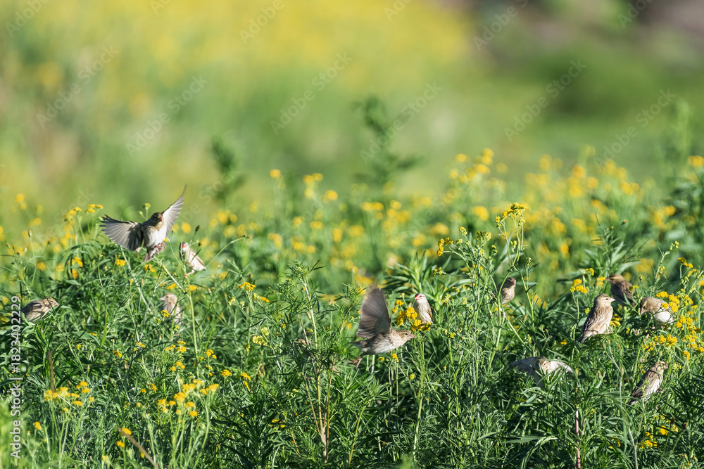 Travailleur à bec rouge dans un champ de tanaisie au printemps en Namibie #1823402229