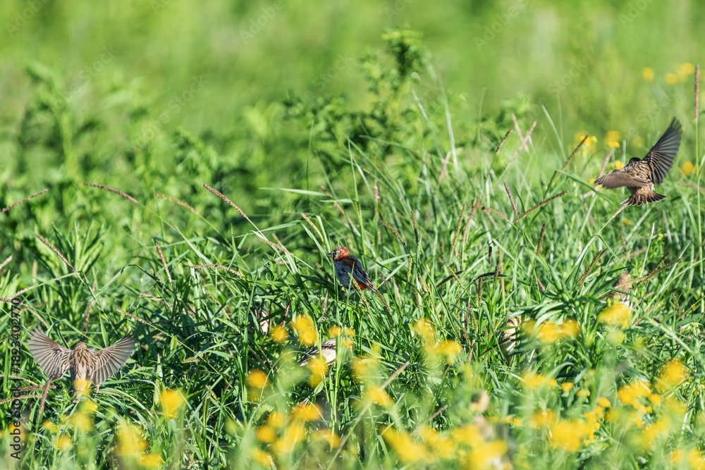Travailleur à bec rouge dans un champ de tanaisie au printemps en Namibie #1823402770