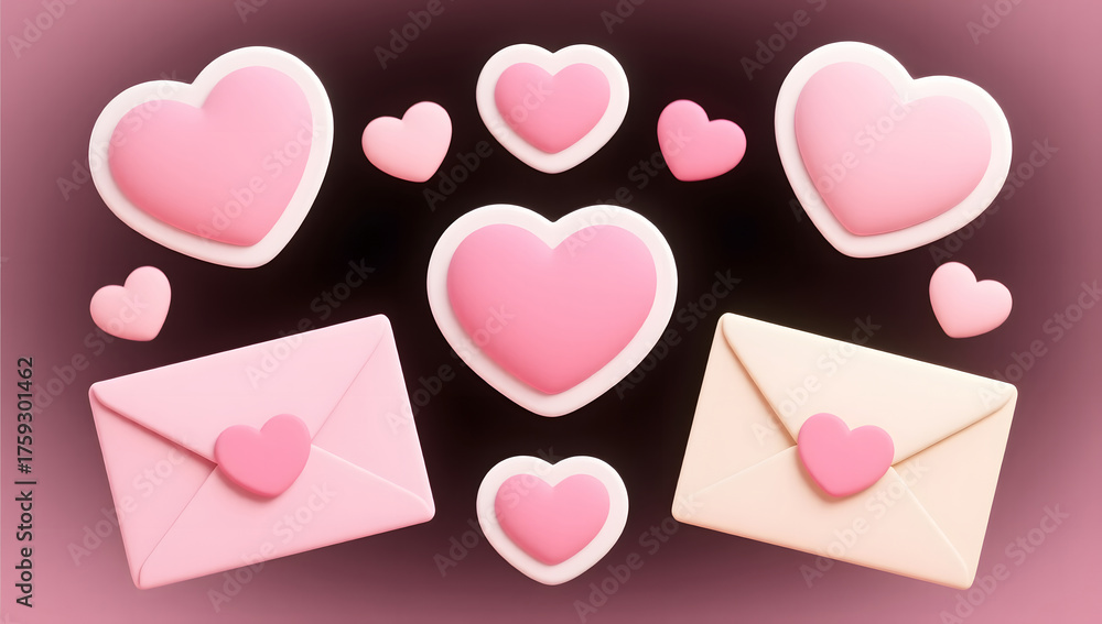 Valentine's Day Illustration with Hearts Surrounding an Envelope #1759301462