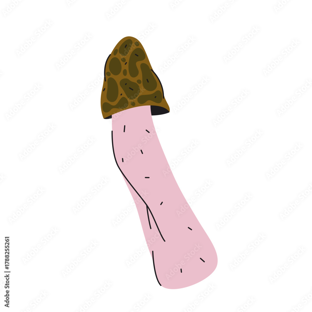 Vector bamboo or basket mushroom with net. Bridal veil tropical forest fungus. Veiled lady netted flora or stinkhorn sign. Edible fungi. Dyctyophora indusiata nature. Botany and biology, mycology. #1788255261
