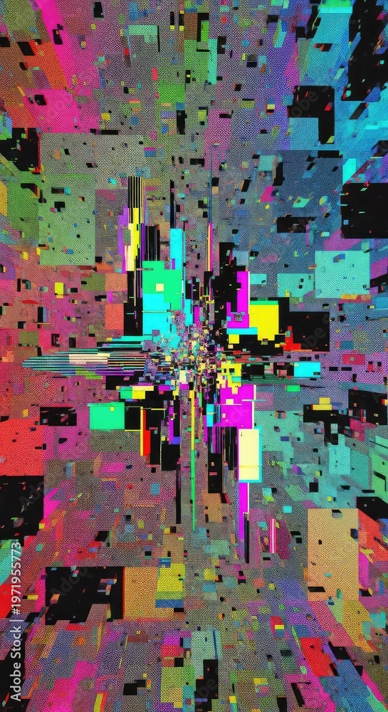 Vibrant, fragmented digital artwork showing extreme distortion and error. An abstract background of noise and broken geometric shapes, noise, vector, futuristic #1971955773