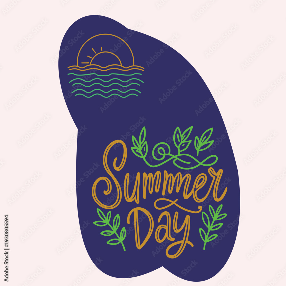 Vibrant summer day illustration with sun and greenery. #1930805594