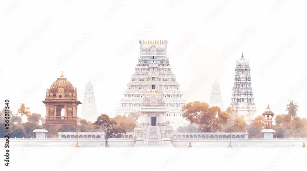 Watercolor illustration for tamil nadu day with iconic tamil nadu landscapes. #866311549