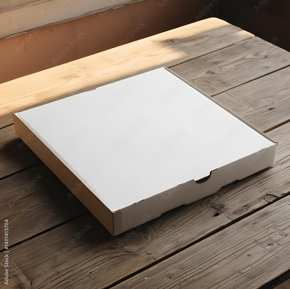 White blank pizza box isolated on table for mock up. #1401413704