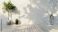 White Brick Wall With Wooden Floor and Plants. #882312319