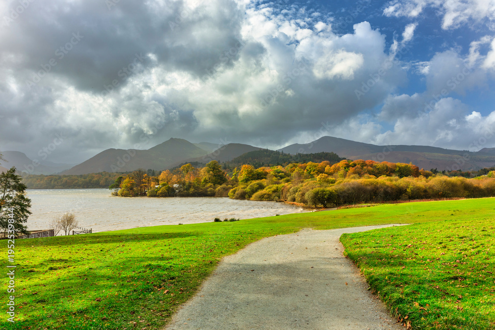 Windy autumn at the Derwentwater lake. England, UK #1952539844