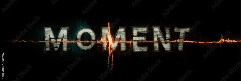 Word Moment exploding with sparks in dark cinematic minimal typography concept. #1776660332