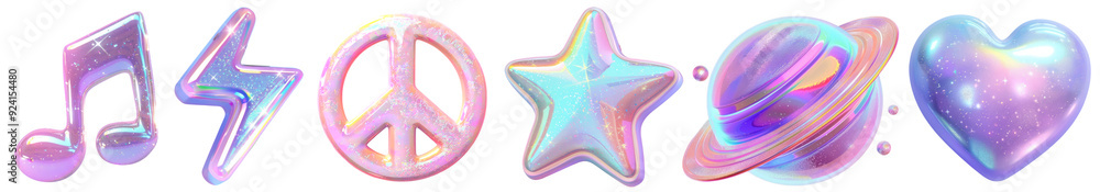 y2k 3d hologram png cut out element set #924154480