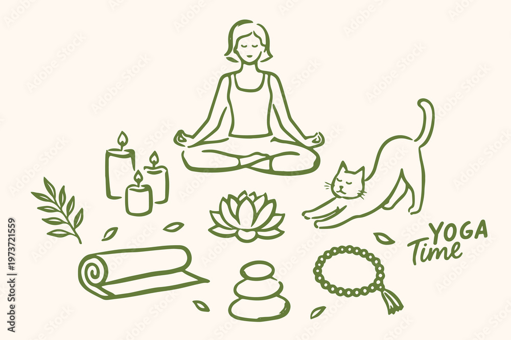 Yoga wellness doodle icon set hand drawn vector illustration #1973721559