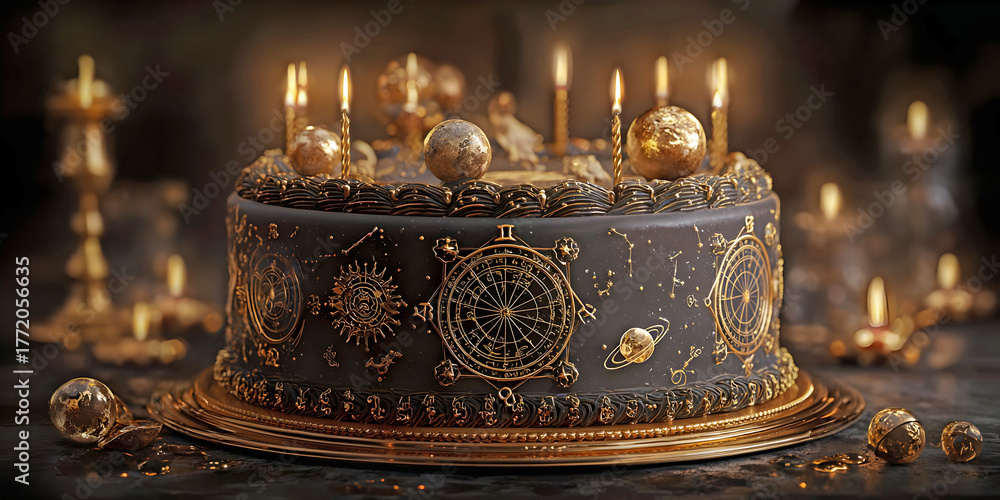 Zodiac Bloom: A Celestial Birthday Celebration in Sugar and Flame, ai generated. #1772056635