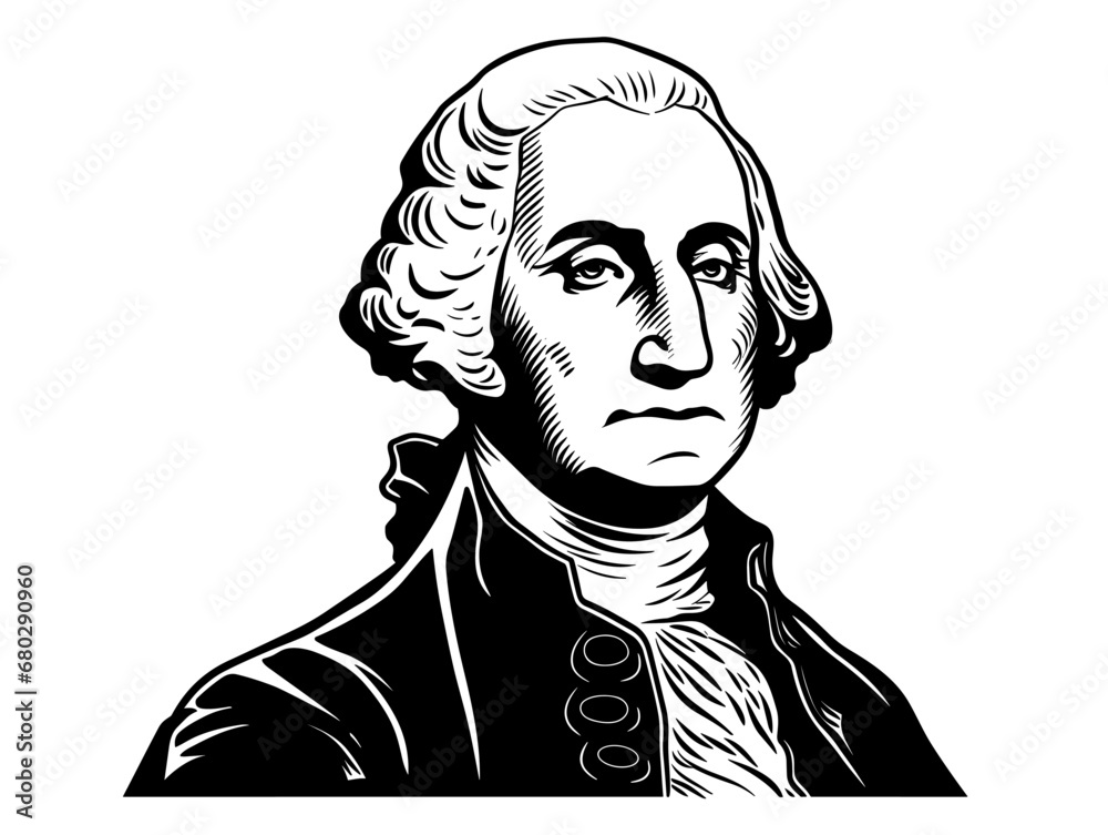 A Black And White Drawing Of A Man - George Washington. #680290960