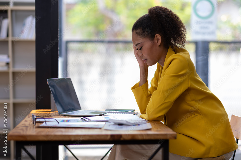 A businesswoman who is tired of sitting in the office for a long time is stressed and has a headache. Woman are stressed and in debt. #1754774331
