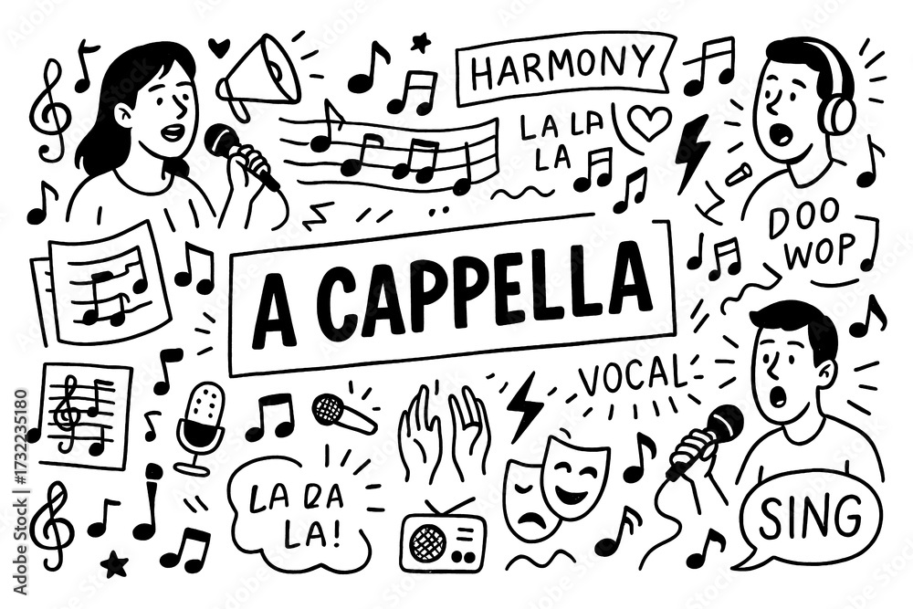 A cappella doodle set with singers, chorus, bass and vocal harmony, Transparent Background #1732235180