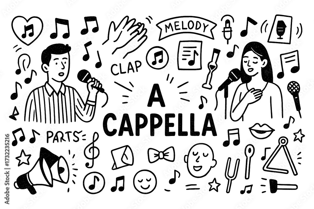 A cappella doodle set with singers, chorus, bass and vocal harmony, Transparent Background #1732235216
