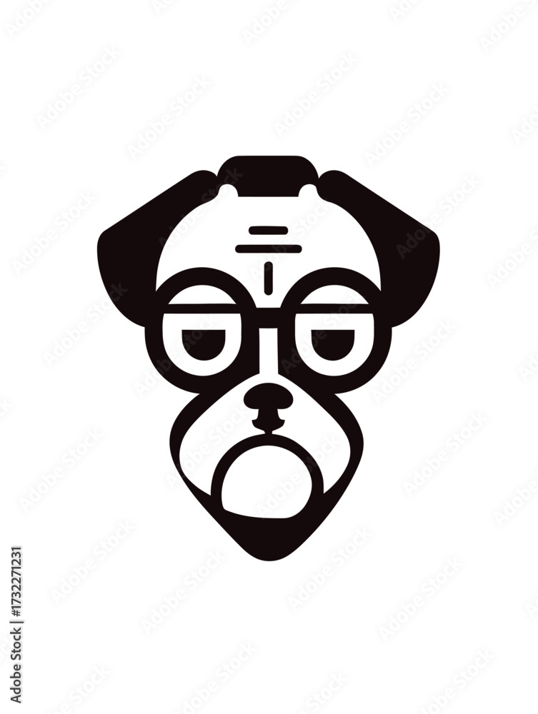 A cartoon-style pug character with glasses and a playful expression brings charm to any design. Its simple lines and bold features convey a lighthearted vibe. #1732271231