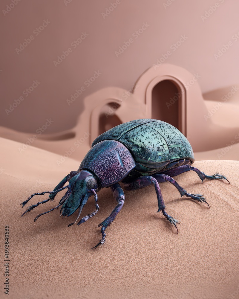 A colorful beetle on a sandy surface. natural biotech innovation, organic wellness, environmental health #1973840535