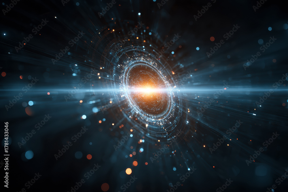 A glowing circular processor core on a circuit board, symbolizing artificial intelligence, advanced computing, and digital power systems of the future. #1781433046