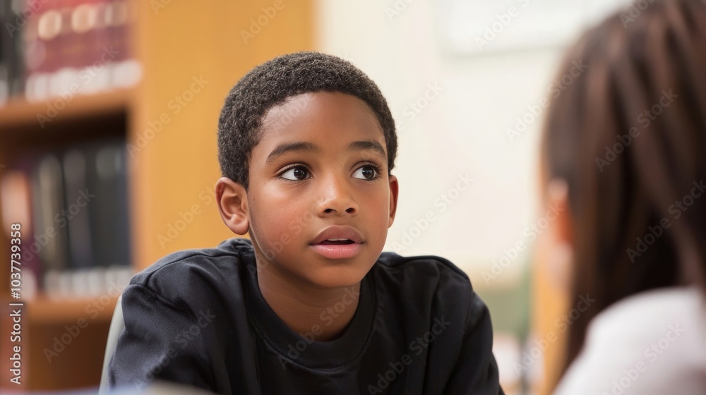 A juvenile court judge speaking with a young defendant, highlighting the focus on rehabilitation in juvenile justice #1037739358