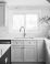 A kitchen detail with brown cabinets, marble subway tile backsplash, gold faucet, and decorations on the marble countertop. #1957591227