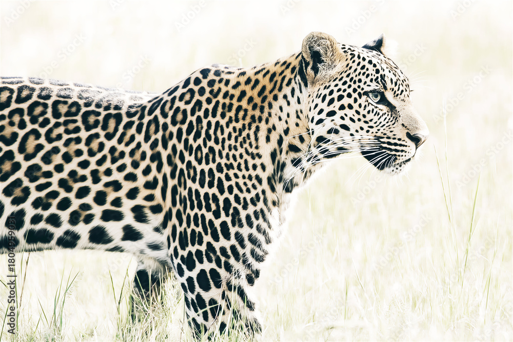 A majestic leopard in its natural habitat, showcasing the animal's stunning spotted coat and intense, focused gaze. #1804959031