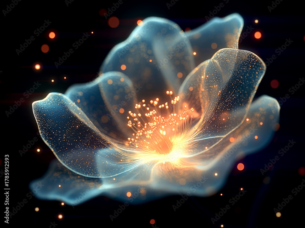 A transparent flower with a soft glow. Its petals, decorated with golden lines #1785912593