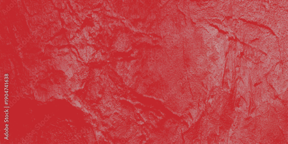 A vibrant red and pink grunge paint texture creates an aged, rough art design on a vintage cement wall surface with a dirty paper material pattern #1904741638