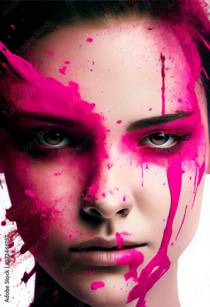 A young woman with pink florescent paint over her body Generative ai Illustration #572466137