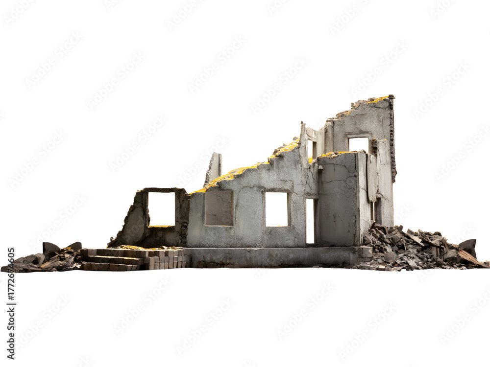 Abandoned ruined building isolated on transparent background, representing decay, history, and urban textures. #1772674605