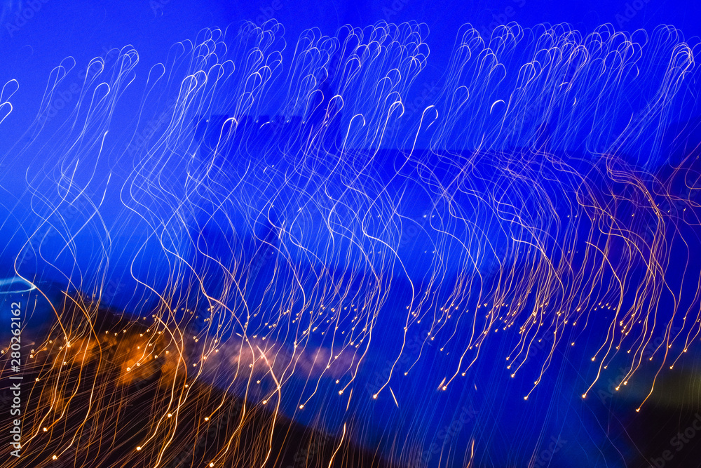Abstract blue and yellow background of unfocused and moved lights. #280262162