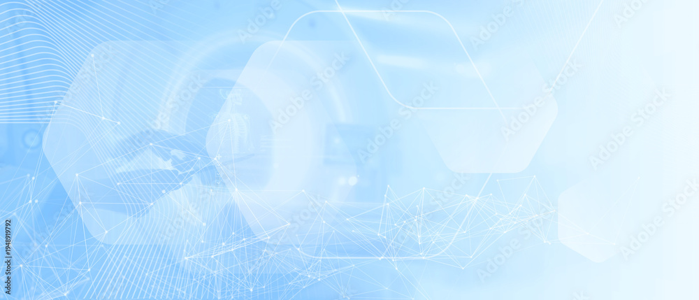 Abstract Blue Technology Background with Digital Network Connections and Data Flow #1948919792