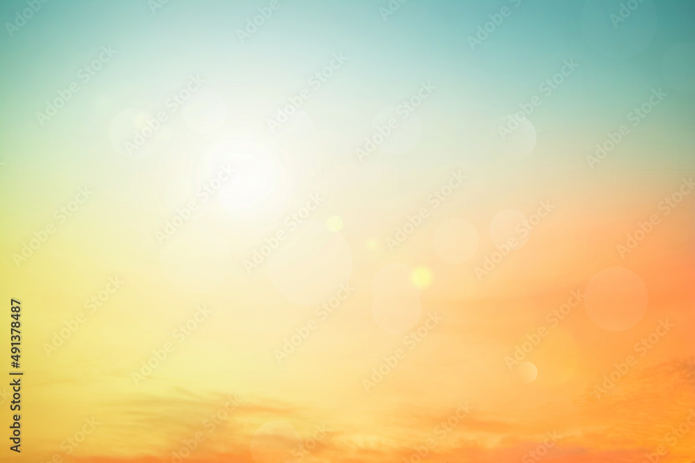 Abstract blurred sunlight beach colorful blurred bokeh background with retro effect autumn sunset sky have blue bright. #491378487