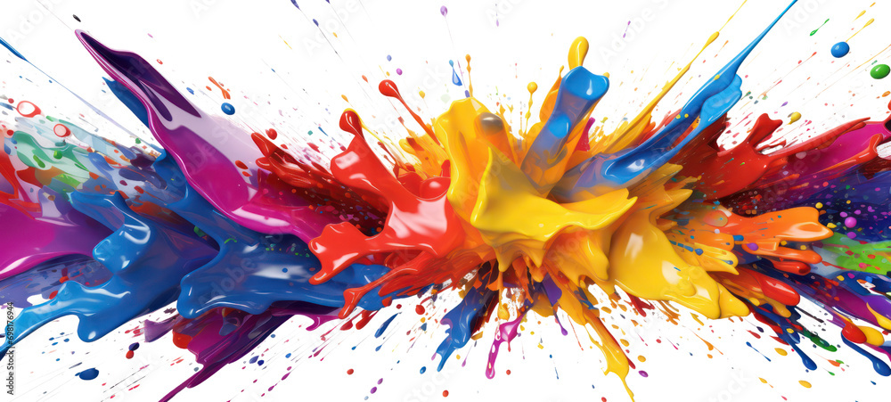 Abstract colorful art colors splashes background illustration - Colorful acrylic paint splashing isolated on white background on transparent background. #698176944