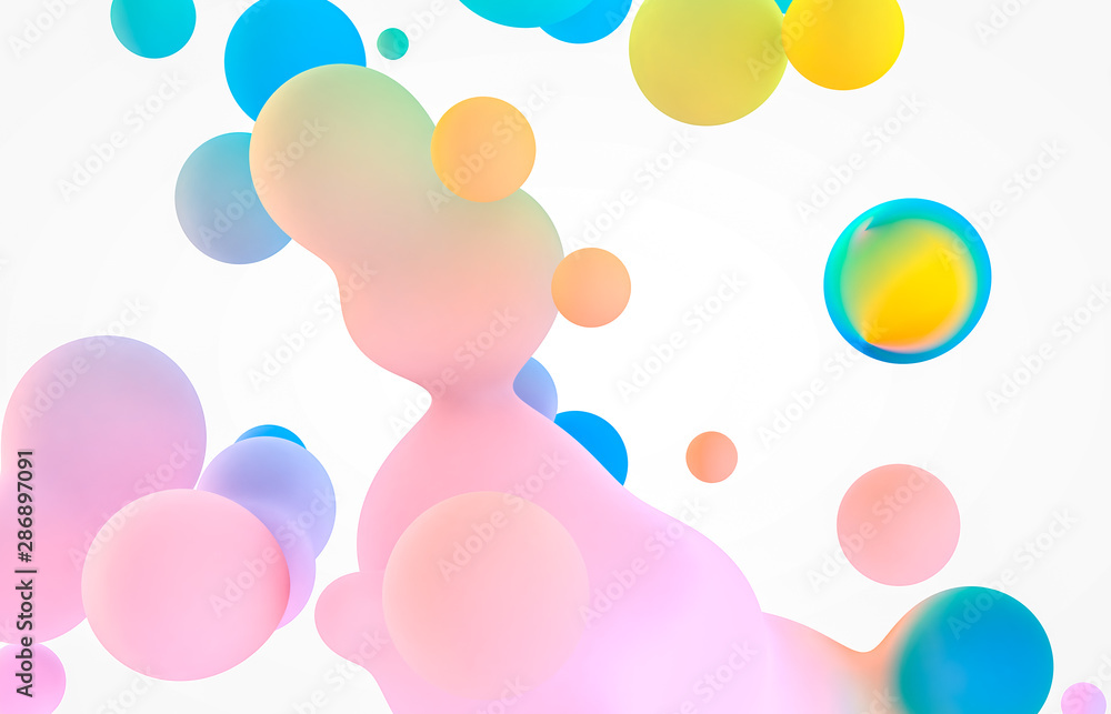 Abstract colorful 3d art background. Holographic floating liquid blobs, soap bubbles, metaballs. #286897091