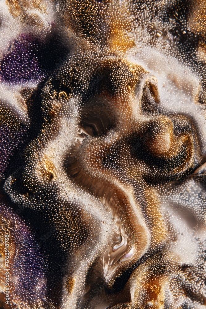 Abstract composition with iridescent shimmering marbling, swirling surface effects and reflective zones. #1763918758