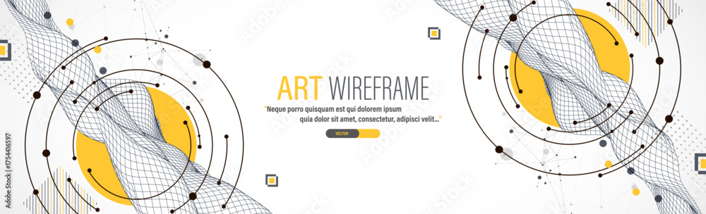 Abstract composition with wireframe wave, dots, and lines. Vector. #1754416597