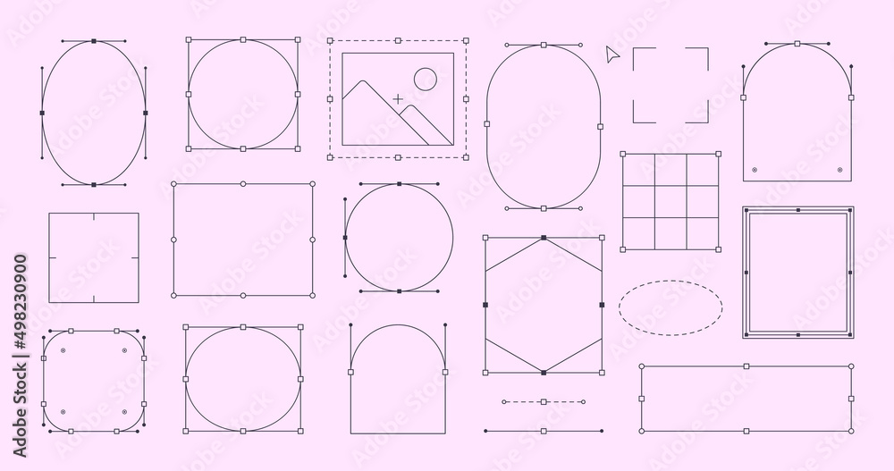 Abstract Geometric Frames Bezier Curve Set. Designer Work Tools Illustration in 90s Pop Style. Vaporwave elements #498230900