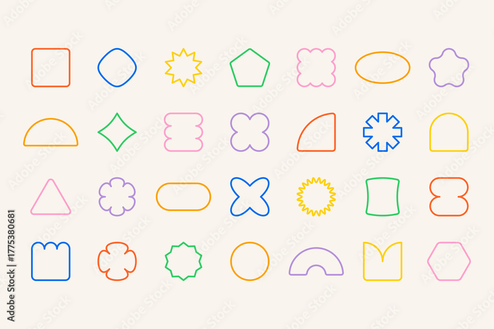 Abstract geometric shapes. Groovy stickers 70s 80s pop art style, retro colorful line funky geometry figures, Y2K organic badges for poster logo design. Vector isolated set #1775380681