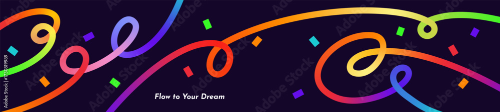 Abstract Gradient Swirl Lines Design with Confetti. Modern Curved Line Rainbow Ribbons Composition for Greetings, Creative Branding, Covers, Social Media, Shop Sale Flyers. Vector Illustration #1730819989
