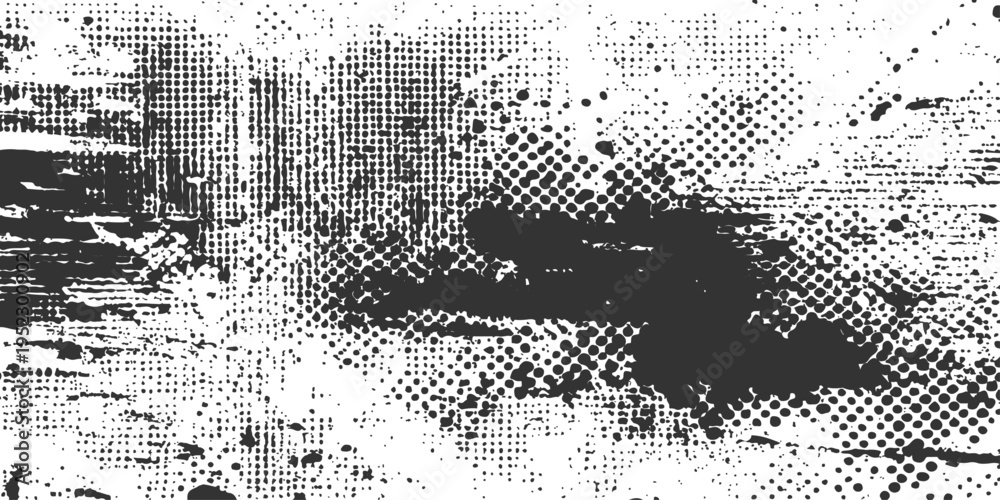Abstract grunge texture of a gritty, splattered ink overlay, revealing a sense of raw industrial design. #1952300902