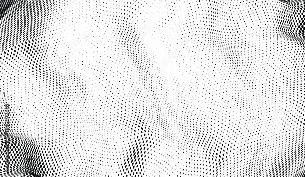 Abstract halftone vector background with warped dots in black and white. Flowing wavy distortion pattern grunge texture dotted texture. #1562192618