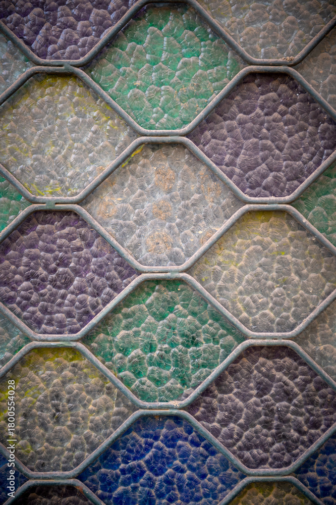 Abstract image of dusty colourful stained-glass window in Lisbon, Portugal #1800554028